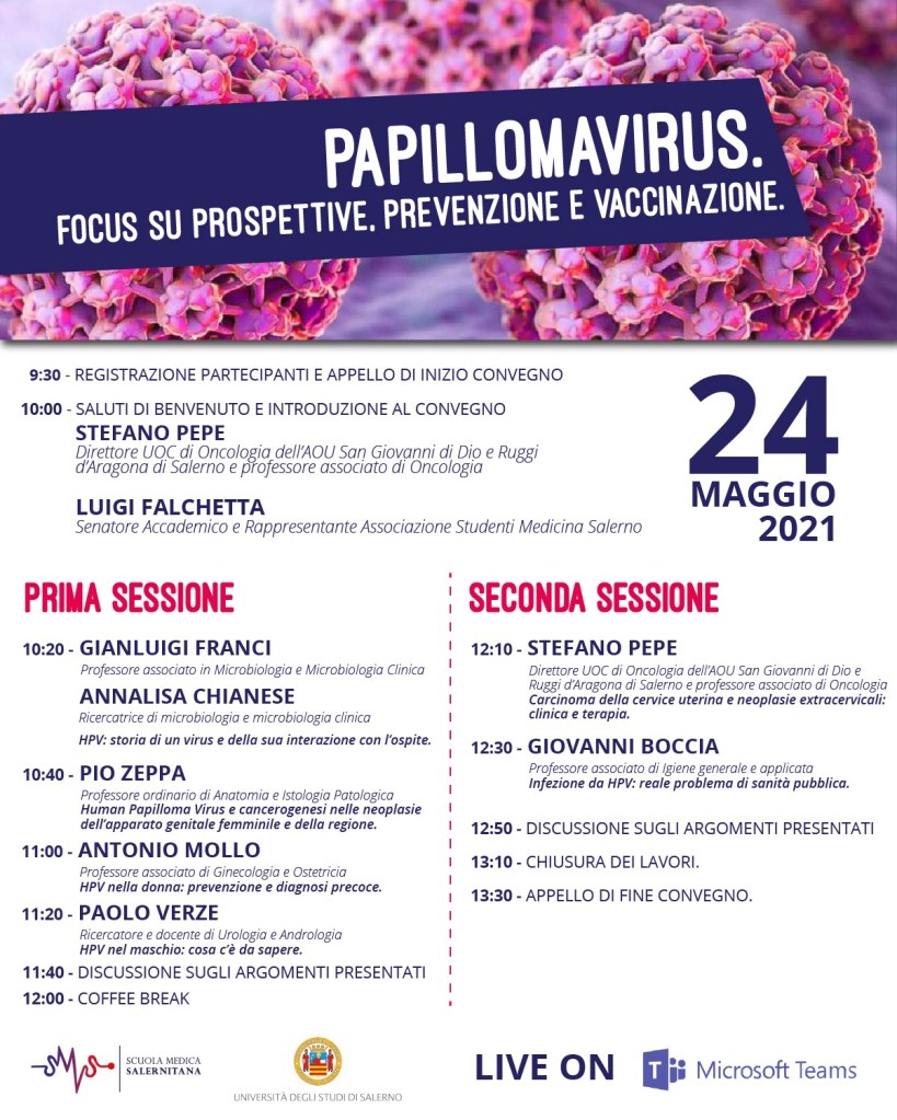 Il convegno nasce in collaborazione con il prof. Pepe della cattedra di Oncologia e tratterà del HPV e spazierà dalla microbiologia del virus ai riscontri clinici sia nell’uomo sia nella donna.