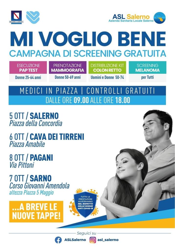Buongiorno ragazzi, abbiamo pensato valesse la pena mettervi al corrente di questa fantastica iniziativa organizzata dall’ASL di Salerno e di invitare voi, e i vostri cari, a prendervi parte, ricordate che una visita non costa nulla (davvero, è gratuita)
