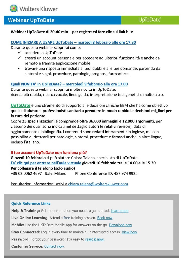 L’accesso a UpToDate è attivo al seguente link