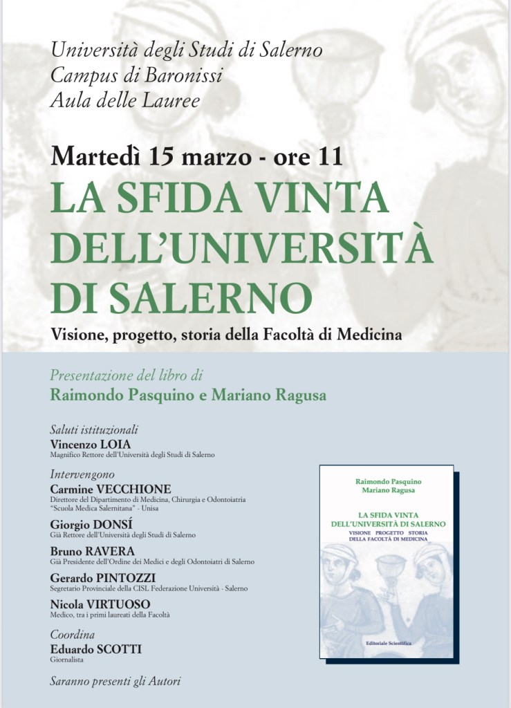 Volevamo informarvi che martedì 15 marzo alle ore 11 si terrà un incontro nell’ Aula delle Lauree, dove l’ex Rettore Pasquino presenterà il suo libro «La sfida vinta dell’Università di Salerno».