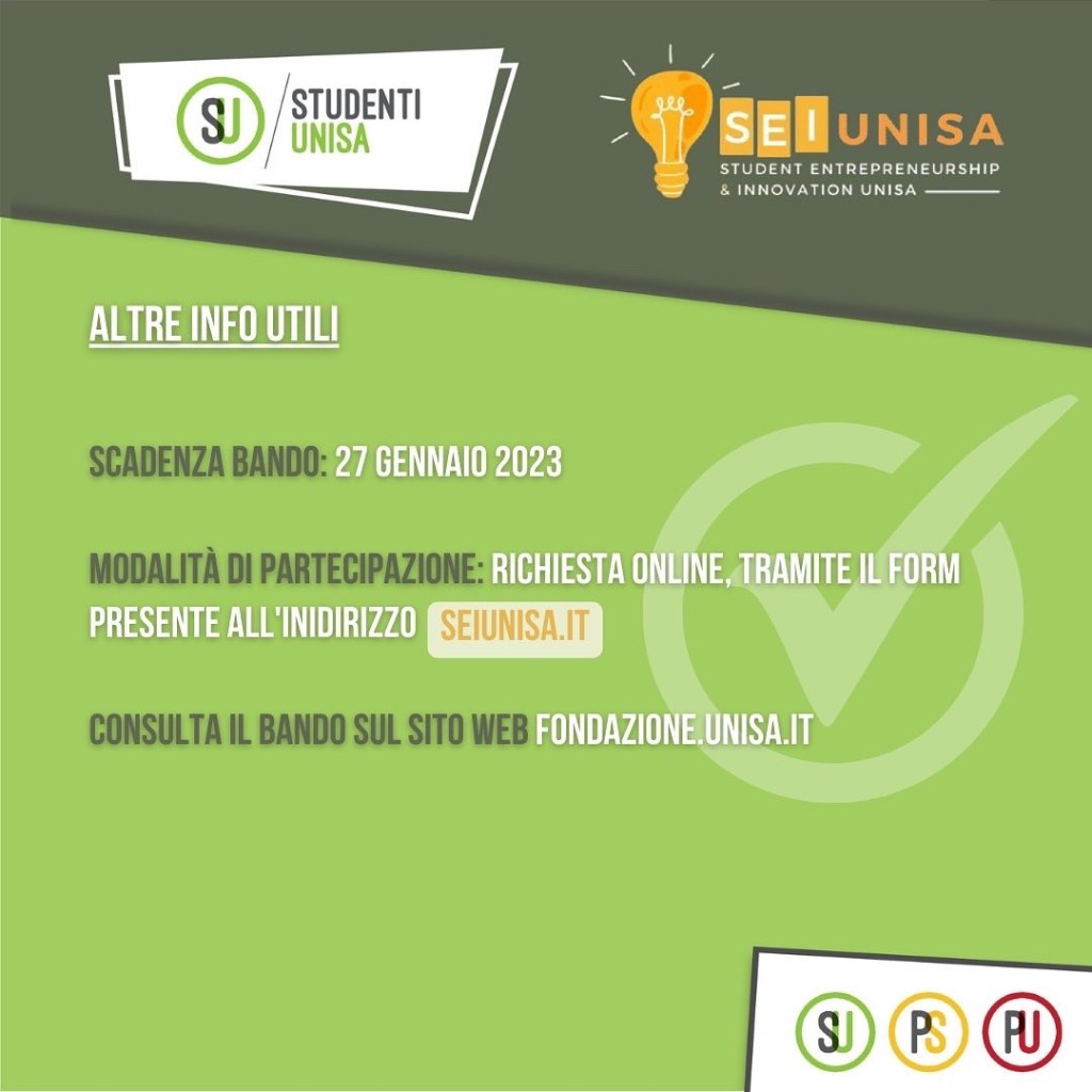 Lo studente dovrà iscriversi entro e non oltre il 27 gennaio 2023 seguendo quanto previsto dal bando scaricabile su https://www.fondazione.unisa.it/news/index/idStructure/4883/id/32894