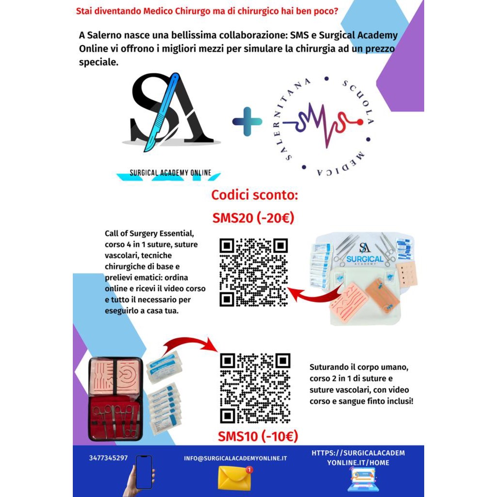 ⁃ Call of Surgery Essential, corso 4 in 1: suture, suture vascolari, tecniche chirurgiche di base e prelievi ematici con relative video lezioni. (SMS20)