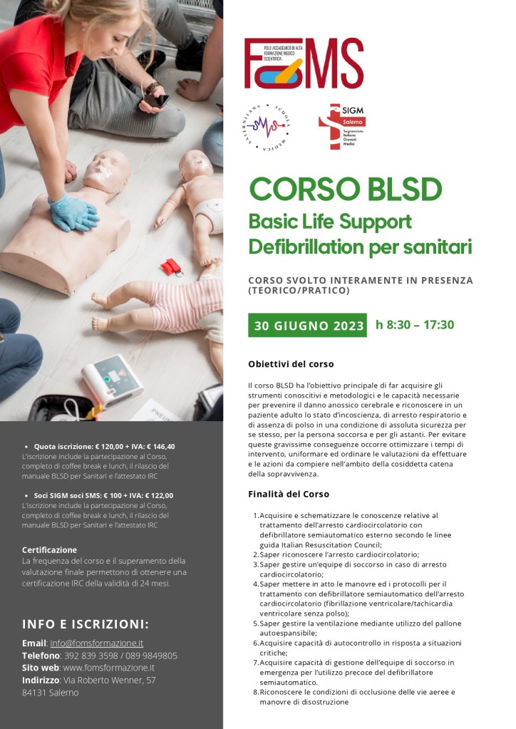 Continua la nostra collaborazione con MedicalSa, scuola di alta formazione medico-scientifica, e anche per quest’anno accademico vi proponiamo il corso BLSD.