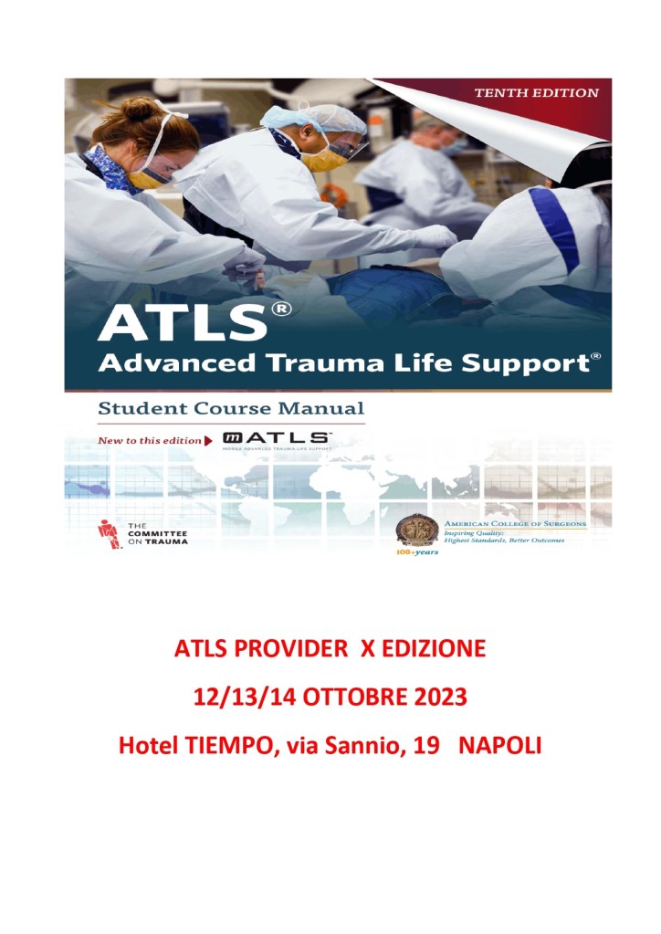 Buonasera ragazze e ragazzi, vi informiamo che il 12-13-14 ottobre si terrà un corso ATLS presso l’Hotel Tiempo a Napoli. Sono disponibili 4 posti per partecipare GRATUITAMENTE come auditors, potendo quindi seguire le lezioni frontali e prender parte alle stazioni pratiche prestandosi come modelli per l’eco FAST e la simulazione del politrauma ma senza ricevere il titolo. Il corso è volto a far acquisire a medici e infermieri nozioni e skills necessarie per la gestione intraospedaliera dei pazienti traumatizzati. È un corso molto formativo, ma consigliamo di partecipare a partire dal quarto anno per comprenderlo al meglio.