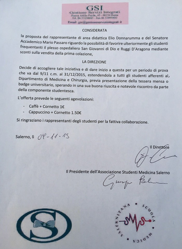 L’associazione SMS – Studenti Medicina Salerno è riuscita a raggiungere, nel corso dei numerosi anni di rappresentanza, tanti piccoli traguardi che sommati tra loro hanno contribuito a rendere il nostro Dipartimento sempre più a misura dello Studente.